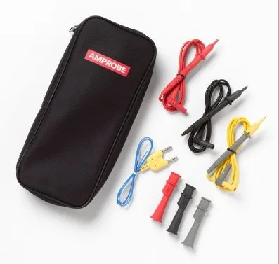- Jeu de cordons de mesure avec pinces crocodiles (rouge, noir et jaune), thermocouple de poche et de type k avec fiche banane convenant aux pinces de courant TRMS Beha Amprobe AMP-200 et 300 Series