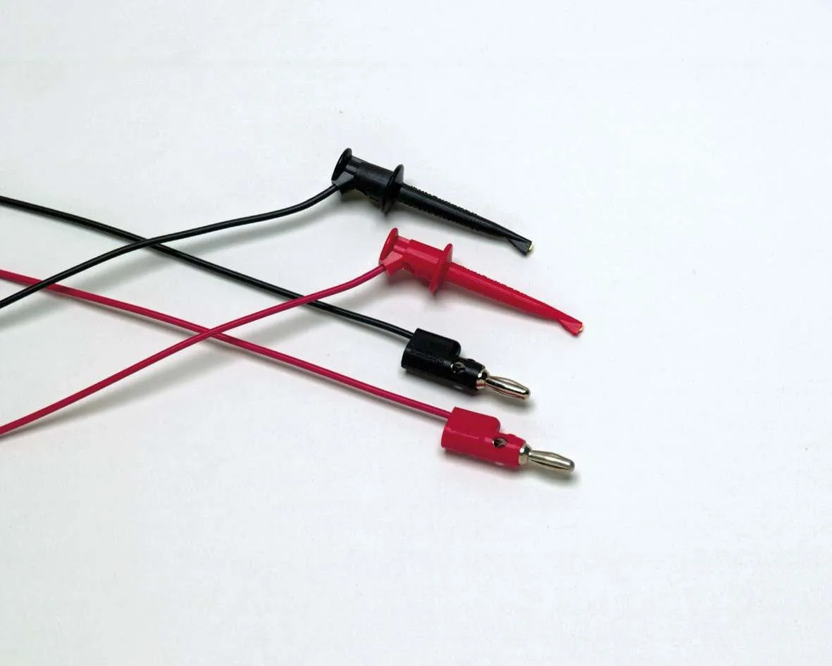 - 1 paire de cordons de test (rouge, noir) avec fiches bananes empilables de 4 mm avec mini-crochets