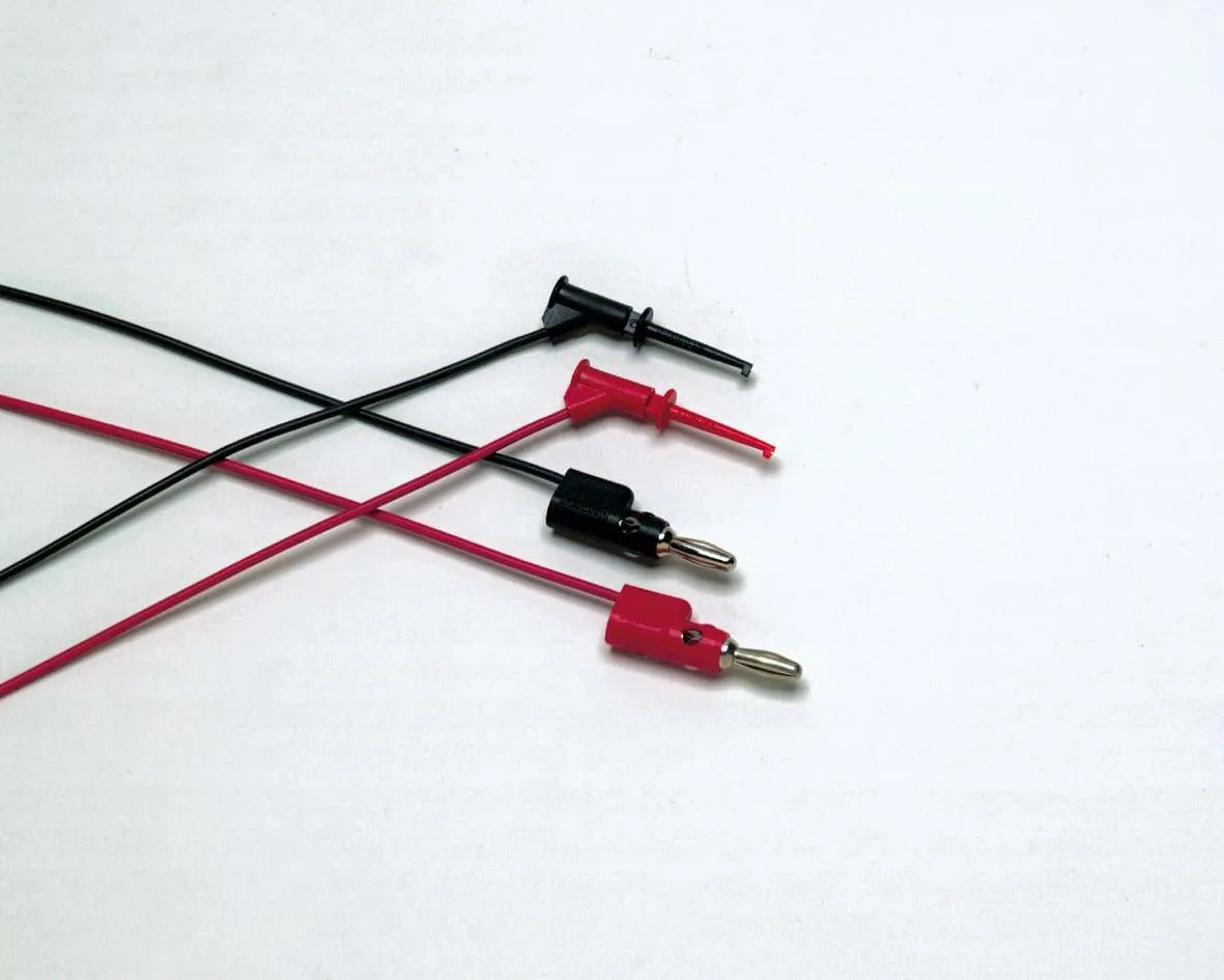 - 1 paire de cordons de test (rouge, noir) avec fiches bananes 4 mm empilables et micro-crochets