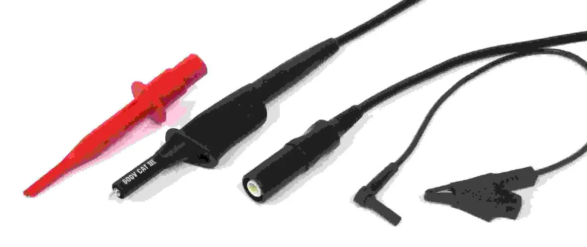 - Jeu de sondes de tension et de mesure 10:1 avec une broche de test de 4 mm recouverte d’un revêtement de sécurité, 40 MHz.